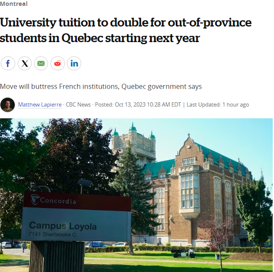 【突发】魁北克省政府下狠手,外省学生学费翻倍!政府要抽头儿!