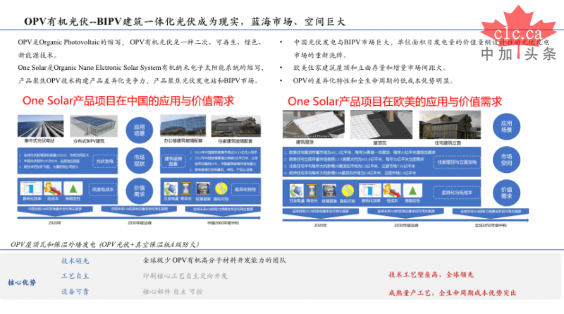 有机光伏OPV(Organic Photovoltaics)作为第三代光伏电池阵营具有弱光效率高、柔性、轻薄、半透明、绿色、低成本、可印刷等独特优势,在消费电子、物联网、建筑光伏、车载光伏等领域具有广阔的应用前景。相比主要应用于室外光伏电站的晶硅等传统光伏技术,OPV有望开辟千亿蓝海市场,进一步提升新能源渗透率。